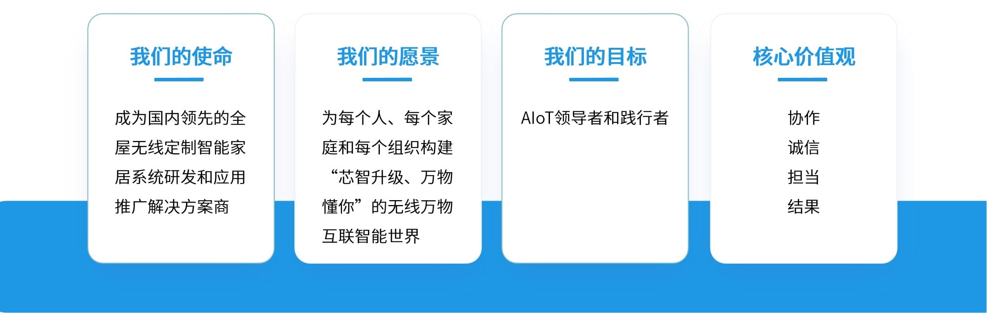 公司依托专业的AIoT技术团队,专注于AIoT各种应用场景的市场落地,基于“平台+终端+应用”,采用业内最先进的0布线、无线通信、个性定制安装方案,集多种设备操控、场景定制、智能产品于一体,打造多样的智能化空间;通过全方位信息整合和大数据分析,对智能家居进行有效管控,让用户体验到更舒适、更便捷、更安全的服务。